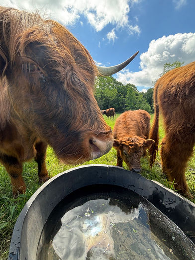 It all started in the summer of 2022. We brought home a couple of Highland Shorthorn cross cattle. The goal was to breed and be able self-sustain a supply of beef for ourselves. I set about the serious work of winning over our stand-offish herd with snacks, and soon their personalities began to shine through and the joy of having Highland cows made us realize how grateful we were to have been blessed with these cows. Meet the current herd.